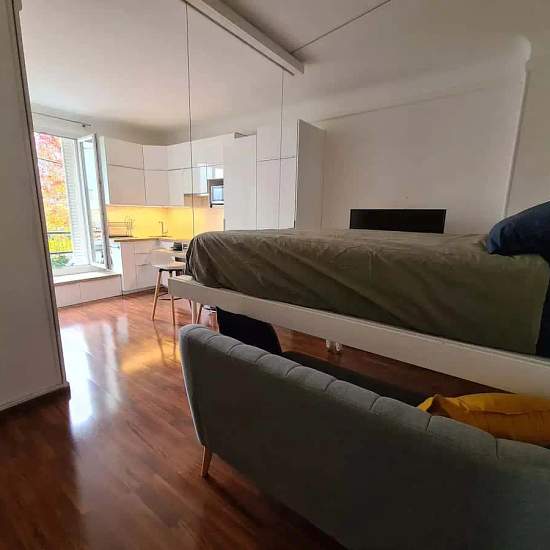 Séjournez dans un studio plein de chaleur et en plein coeur du centre-ville de Sartrouville. Profitez d'une belle place arborée et commerçante pour découvrir les meilleurs restaurants de la commune. La proximité avec le RER A qui vous déposera sur les Champs-Elysées en 20min ou à la Défense en 15min en fait un endroit idéal pour un séjour touristique ou professionnel. Le logement Le logement est un magnifique studio entièrement neuf comprenant tous les équipements nécessaires. Le lit est un véritable lit escamotable pour un gain de place et ...