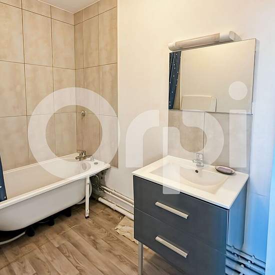 Appartement F2 de 35m². Résidence "Les Arènes", en centre-ville, au 4ème étage sans ascenseur, appartement F2 lumineux : entrée avec placard, séjour, cuisine indépendante semi-équipée, une chambre et salle de bains. Une cave. Eau froide comprise. Libre au 25 avril 2026.