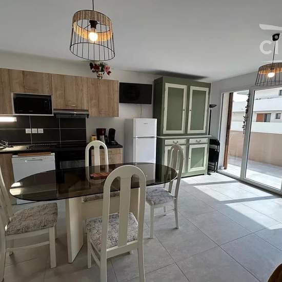 LOC SAISON : Charmant T2 cabine dans une résidence neuve de 2025, idéal pour une famille, dans une résidence sécurisée avec piscine. Le ménage et le linge de lits sont inclus (possibilité de louer les kits de serviettes à l'agence). Profitez de vos vacances dans un appartement de 50 m² avec une terrasse de 22. 50m2 vue sur la piscine à 400m de la plage. Cet appartement idéal pour une famille avec 2 enfants, se trouve au premier étage d'une résidence sécurisée avec piscine, le logement dispose d'une place de parking et du wifi. Le logement es...