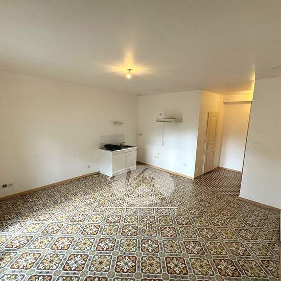 T2 apartment, 1st floor, right in the town centre, living area 43 m² with balcony, comprising a living room with kitchenette (23 m², not equipped), bedroom, shower room with WC.