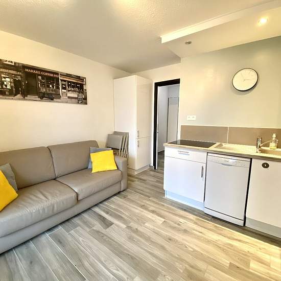 Coquet appartement de type T2 loué Meublé de 25.61m² en rez-de-chaussée d'une résidence sécurisée quartier Joliot Curie. Composé d'un séjour ouvert sur cuisine aménagée et équipée, cabine faisant office de chambre, salle d'eau avec wc. Terrasse donnant sur la piscine de la résidence. Place de parking privative. LIBRE. Loyer HC : 500€ - Provisions pour charges : 74€ ( syndic avec eau + TOM) - Caution : 500€ Honoraires charge locataire : 332.93€ TTC dont 76,83€ TTC pour l'état des lieux. Date de réalisation du diagnostic : 27/11/2023 - Consomm...