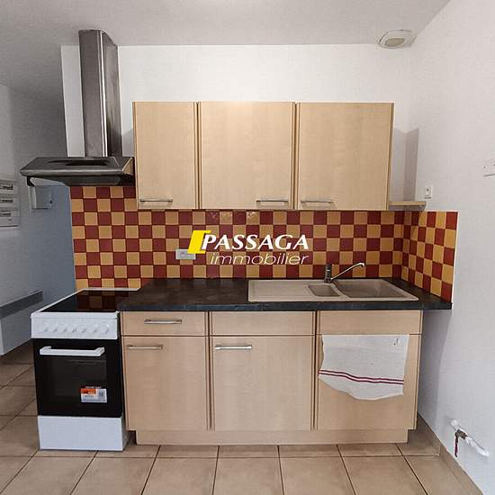 Severac le château : appartement de type 1 bis traversant au coeur de séverac comprenant un hall d'entrée, un séjour avec une cuisine aménagée (hotte aspirante, placards hauts & bas) ouverte sur le séjour, une chambre, une salle de bains avec un wc, une terrasse de 30 m² environ exposée sud avec un cabanon de 4.29 m² environ. Chauffage individuel électrique. Annexe : une cave.