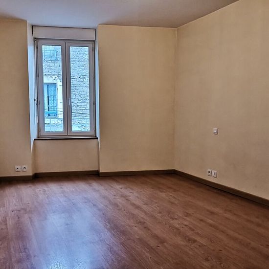 Severac le Château: large bright 1-bedroom apartment of 47.60 m² in the heart of the old village, comprising: living room with fitted open kitchen (upper & lower cabinets, hood, oven, cooktop), 1 bedroom, bathroom with toilet. Individual electric heating with programmer (fluid-filled radiators).