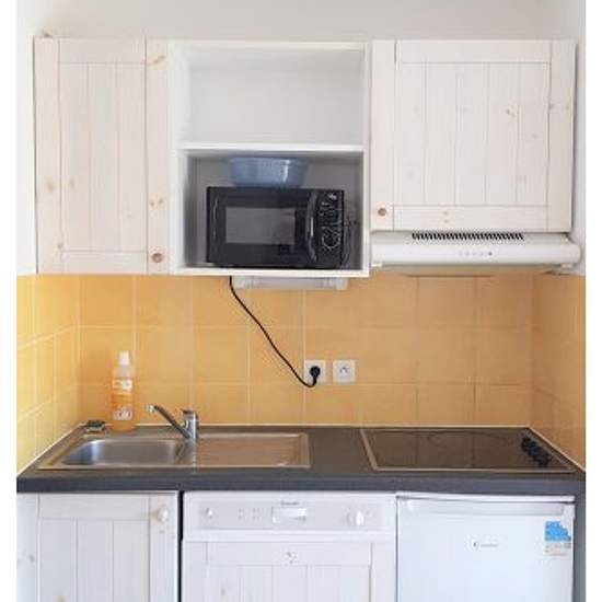 Non fumeur Séjour avec 3 couchages (canapé gigogne 2 places + chauffeuse 1 place). Chambre avec 1 lit double. Kitchenette équipée (réfrigérateur, plaque vitrocéramique, micro-ondes, cafetière à filtres, lave-vaisselle). Salle de bain avec WC WC séparé (sauf dans les appartements pour personnes à mobilité réduite) Balcon terrasse ou rez-de-jardin. EQUIPEMENTS: Wifi, Télévision, Vaisselle, Draps, Couette / Couverture, Serviettes, , Chauffage, salle de bain avec baignoire, Accès Piscine sur horaires et période d'ouverture, Ascenseur, Parking ex...