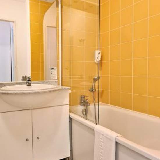 No smoking Living room with 3 beds (sofa bed 2 places + heater 1 place). Bedroom with 1 double bed. Equipped kitchenette (refrigerator, ceramic hob, microwave, filter coffee maker, dishwasher). Bathroom with separate toilet (except in the apartments for people with reduced mobility) Balcony terrace or garden level. EQUIPMENT: Wifi, Television, Crockery, Sheets, Duvet / Blanket, Towels, Heating, Bathroom with bathtub, Access to swimming pool on schedules and period of opening, Elevator, Parking outside and underground, Smoke detector, clothes...