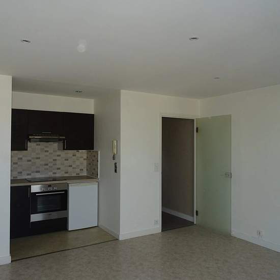 ST BRIEUC, proche centre ville, au dernier étage d'une résidence sécurisée avec ascenseur, appartement 2 P. en bon état comprenant : entrée avec placard, séjour ouvrant sur terrasse - cuisine équipée, 1 chambre, salle d'eau - WC - cave