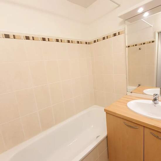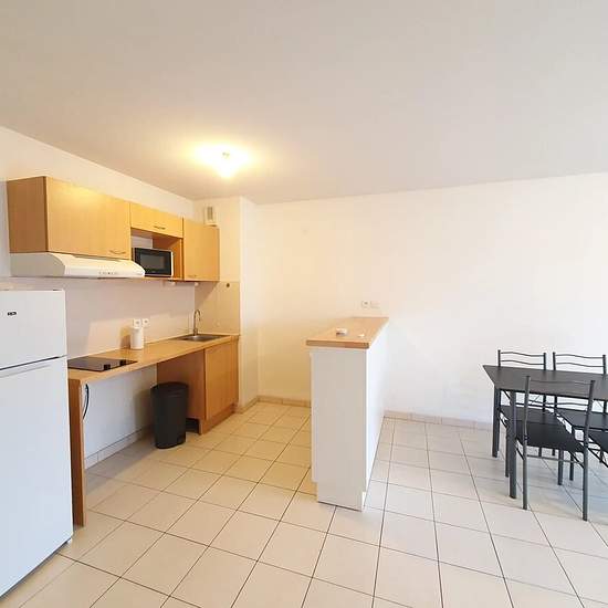 ST BRIEUC Robien, à quelques minutes à pied de la gare S.N.C.F. et à proximité des lignes de bus, dans résidence de 2010 avec piscine, agréable appartement 2 P. MEUBLE comprenant : entrée avec placard, séjour - coin cuisine équipée ouvrant sur balcon, 1 chambre avec placard, salle de bains, W.C. - parking couvert et fermé