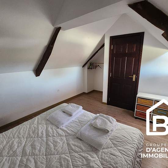 PROCHE MER ET CAMPAGNE, dans une petite copropriété de charme, grand appartement duplex meublé de deux pièces principales situé au 1er étage s'accédant par un bel escalier en pierre privatif. L'appartement se compose d'une grande cuisine de 17m² avec WC et local technique, semi ouverte sur double séjour de 28m² avec poêle à granulés, à l'étage chambre, grenier aménagé pouvant servir de dressing, salle d'eau avec WC. Disponible le 15 septembre 2025, à visiter! 125 euros de provisions mensuelles de charges en supplément comprenant l'eau et l'é...