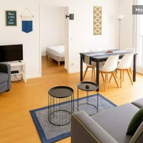 Top floor - Bright 2-room apartment with garden view & parking - Recent residence Plaine Saint-Denis In a modern, secure residence, a stone's throw from the Pleyel footbridge and the business district, superb top-floor 2-room apartment with unobstructed garden view. Quiet, light-filled flat comprising : - Pleasant living room with sofa bed and armchair bed, TV, wifi fibre 5G, - Nice bedroom, - Separate fitted kitchen (oven, electric hob, microwave, coffee machine, kettle, washing machine, crockery and cutlery). , - Bathroom + WC (bed linen a...