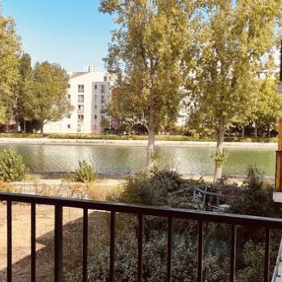 Au 2e étage avec ascenseur d'une résidence récente est sécurisée. Beau 2 pièces meublé de 49m², St-Denis stade de France, à 5 min des RER B et D, entièrement refait en peinture Cuisine américaine, beau séjour avec balcon avec vue dégagée sur le canal l'Ourcq, sans vis-à-vis. Salle de bains et wc séparés. Meubles neufs lit, matelas, armoire, canapé, plaque vitrocéramique, table de salon, tabourets, chaises, réfrigérateur/congélateur, vaisselle. Parking sous-sol. Avec gardien. Proximités tous commerces. (restaurants, cinéma, pharmacie, supéret...