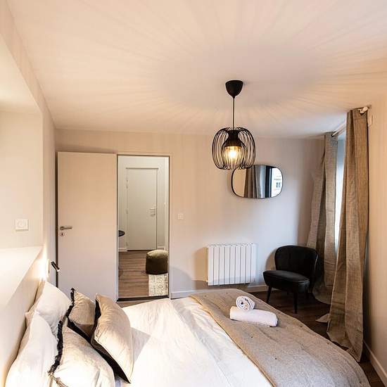 Cet appartement de type 2, récemment rénové et équipé, vous propose un espace de vie fonctionnel. une cuisine entièrement équipée et aménagée ouverte sur un coin salon/salle à manger, une salle de bain équipée d'une douche à l'italienne, et une chambre avec rangements offrant un lit double confortable. La résidence met à disposition une laverie avec machine à laver et un sèche-linge pour votre confort. Vous pourrez également profiter de la cour intérieure pour vous détendre en plein air. Idéalement situé à moins de deux minutes à pied du cen...