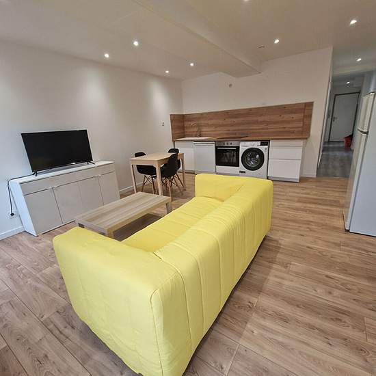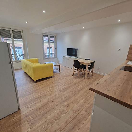 ST ETIENNE JACQUARD32 RUE PAUL BERT -T2 de 52m²+ Alcôve entièrement meublé -3ème étage d'une petite copropriété-Cuisine équipée (four, plaques, frigo, machine à laver...) ouverte sur séjour avec canapé, table, TV-1 chambre avec lit double-Une alcôve de 7.5m² faisant office de bureau ou chambre d'enfant avec bureau , rangement-Salle d'eau avec douche, wc-Chauffage individuel electrique-DPE D-LOYER 550 euros + 20 euros (entretien immeuble)Disponible de suite