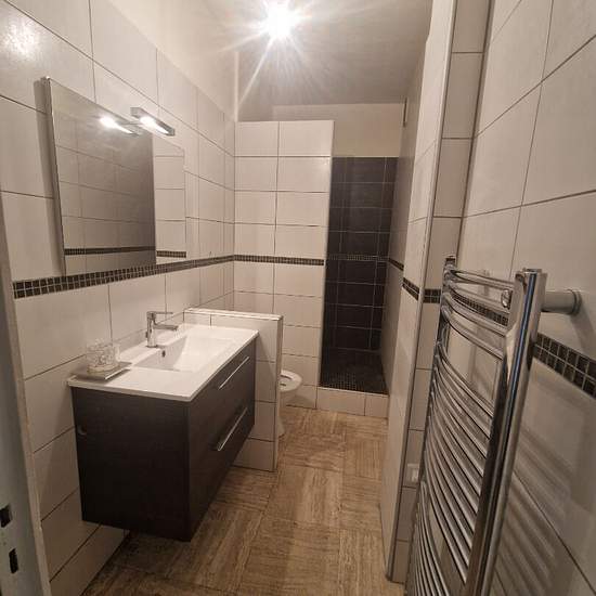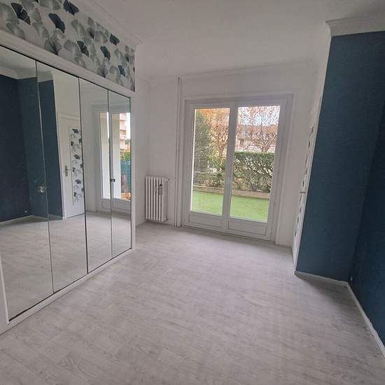 T2 de 47m² en rez de jardin situé 5 place maréchal foch à ST ETIENNE-T2 de 47 m² dans résidence calme et sécurisée-Grand séjour avec cuisine semi équipée-Grande terrasse-Une chambre séparée avec placards-Une salle de bain avec douche et WC, meuble vasque-Chauffage collectif au gaz-Fenêtres en double vitrages-Interphone-Loyer 527 euros + 110 euros de charges (entretien immeuble, chauffage, TEOM)