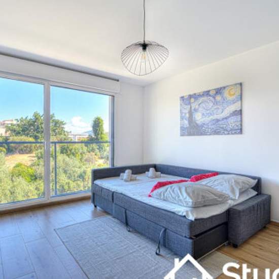 Découvrez cet appartement moderne et climatisé, offrant une vue dégagée sur les hauteurs de Saint-Laurent-du-Var, dans un cadre neuf et confortable. Avec une surface de 47 m², cette location est situé au cinquième étage avec ascenseur et se compose de : - un salon spacieux avec canapé-lit confortable et espace salle à manger, - une cuisine ouverte parfaitement équipée (machine à café, grille-pain, bouilloire, four, micro-ondes, plaques de cuisson, lave-vaisselle, réfrigérateur, congélateur), - une chambre avec un lit double de 160 cm, - une ...
