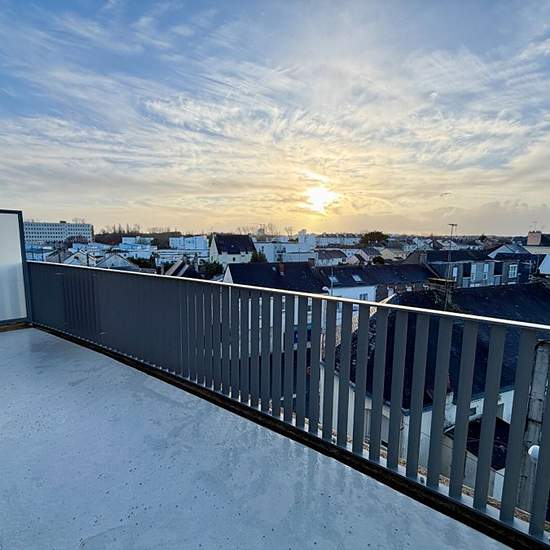 Apartment Saint Nazaire — 2 rooms, 44.55 m². Just five minutes from the town center, discover this beautiful new unfurnished T2-type (two-room) apartment of 44.55 m². Located on the fourth floor of a modern residence, it comprises an entrance, a bright living room facing due south with open views and no overlooking so you can enjoy the balcony. The living room opens onto a fitted and equipped kitchen, there is one bedroom with storage, a shower room, and separate toilet facilities. You will also benefit from a balcony of approximately 12.30 ...
