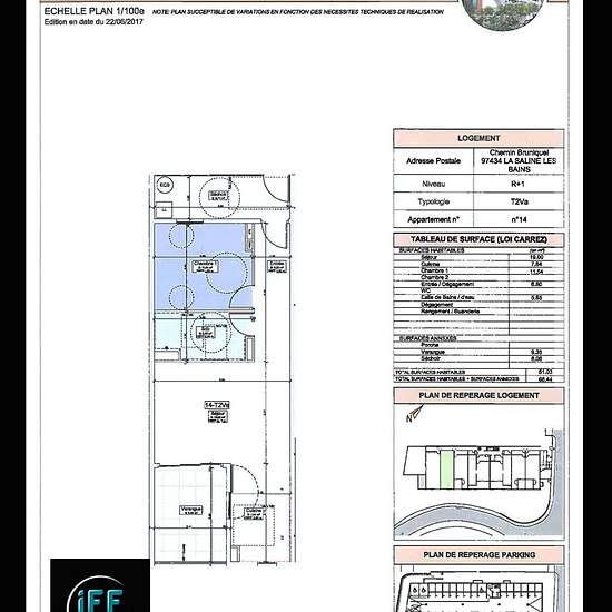Nous vous proposons à la location un appartement T2 d'environ 51 m2 au 1er étage d'une résidence avec ascenseur Il se compose d'un séjour ouvert sur une varangue de 9,35 m2 avec une cuisine aménagée (placards, plaque de cuisson et hotte), une chambre avec placards et une salle de bain avec toilettes. Belles prestations pour cette résidence sécurisée de 2017 avec 15 appartements. 2 places de parking en sous-sol. Disponible le 18 janvier 2026. Logement soumis aux plafonds de revenus de la Loi de défiscalisation PINEL DOM. Les informations sur ...