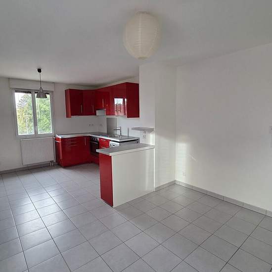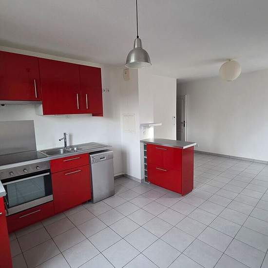 Appartement À Louer. Dans résidence sécurisée. Bel appartement lumineux et fonctionnel de deux pièces comprenant : couloir avec emplacement pour machine à lever, wc, séjour avec cuisine ouverte aménagée et semi-équipée (plaque de cuisson, four, lave-vaisselle, hotte), dégagement, salle d'eau, une chambre avec dressing. Chauffage central gaz de ville. 2 places de parking en enfilade. Disponible de suite.