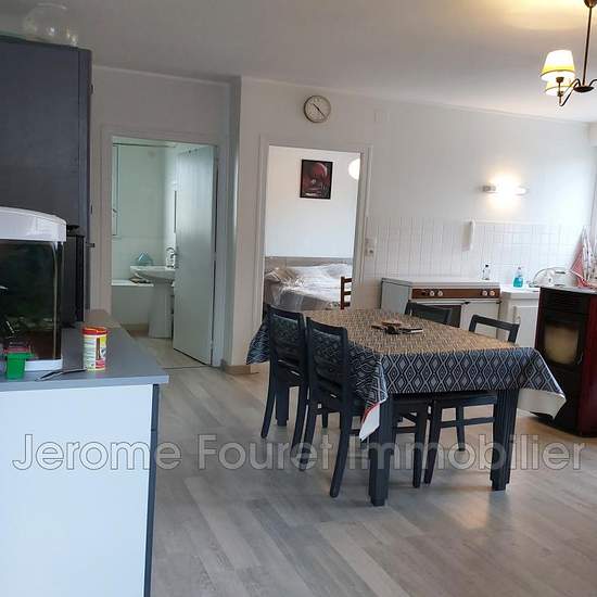 Appartement situé au 1er étage composé d'une entrée sur pièce de vie avec poele à pellets + chauffage électrique, balcon, chambre, salle de bains avec wc. Location nue. un emplacement parking voiture dans la cour privée.