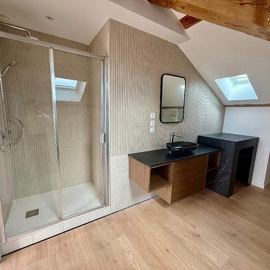 À découvrir, ce magnifique T2 au style loft, niché dans une bâtisse de caractère entièrement rénovée. Un bien rare offrant de très beaux volumes, une terrasse tropézienne de 26 m² avec vue exceptionnelle, et des prestations haut de gamme. Localisation : Rue de la Charlière, secteur très recherché de Saint-Priest-en-Jarez Cadre calme, verdoyant et résidentiel, proche des commodités, écoles et transports Description : Entrée desservant un bel espace de vie lumineux Séjour avec cuisine ouverte équipée, esprit loft Grande chambre avec dressing e...