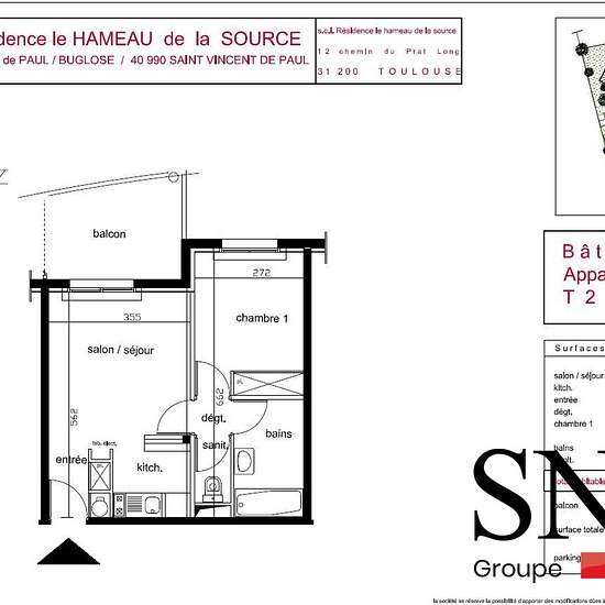SNG IMMOBILIER // RESIDENCE LE HAMEAU DE LA SOURCE DISPONIBLE Contactez Madame EZCURRA Nathalie de l'agence IMMOBILIERE SAINT VINCENT au 06x45x15x99x90 ou par mail : EMAIL pour visiter cet appartement T2 de 36.90m² au 1er étage, comprenant une entrée, un séjour, un coin cuisine, une chambre, une salle de bain et un WC indépendant. Un balcon de 8m². Vous disposez d'une place de parking privative. Honoraires de 405,90 € TTC à la charge du locataire comprenant 110,70 € TTC pour l'état des lieux. Loyer de base 462.00 €/mois. Provision sur charge...