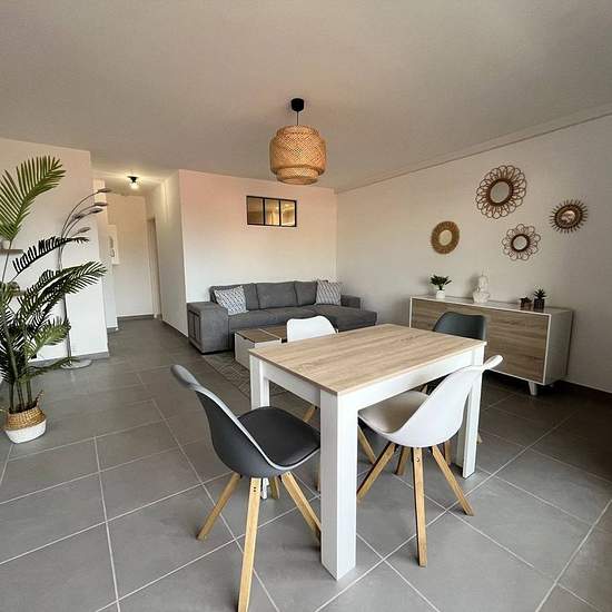 En plein coeur de Sainte-Maxime, l'agence Baia Immobilier vous propose ce superbe appartement refait à neuf pour vos vacances. L'appartement se situe à 100 m du bord de mer, à proximité du port, des commerces et restaurants. Il est composé d'une grande pièce à vivre avec salon, table et chaises et cuisine ouverte toute équipée. La pièce à vivre donne sur une grande baie vitrée ouvrant sur votre terrasse avec salon extérieur. Par le couloir vous accédez aux deux grandes chambres doubles avec placards, un grand placard dans le couloir et à la ...
