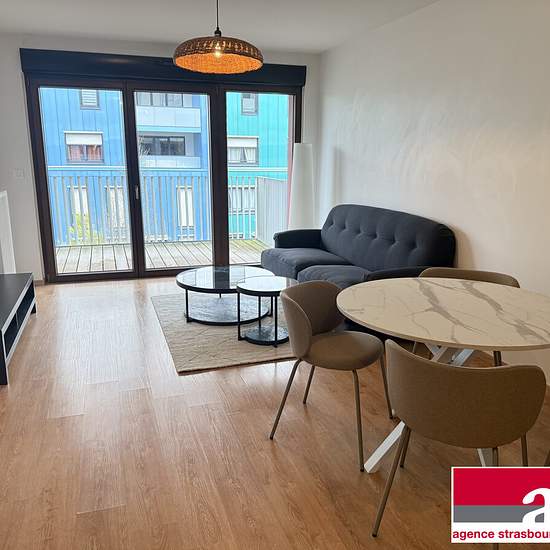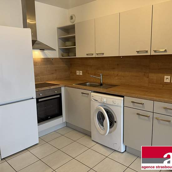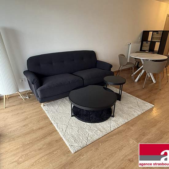 CRONENBOURG - 28 RUE DU BATAILLON DE MARCHE 24 - Near Rotonde tram and highway access. On the 2nd floor (no elevator). Beautiful furnished two-room apartment of 47 m² comprising an entrance, a living room with equipped kitchen, an 8 m² balcony facing east, a hallway with closet, a bedroom of 11 m² and a shower room with shower and toilet. Closed garage in the basement with motorized door. Available immediately. Collective heating. Rent guarantee insurance. Contact: Clara LOTZ. Tenant fees €629.23 incl. VAT, including €145.32 incl. VAT for th...
