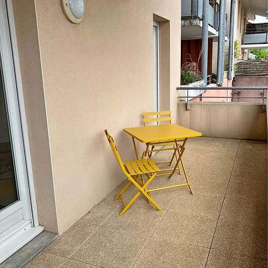 Loue un appartement de 40 m2 meublé, refait à neuf et sécurisé au 1 er étage sans ascenseur. Exposition sud. 1 cuisine tout équipée (four pyrolyse, plaque 2 feux vitrocéramique, micro-ondes, réfrigérateur/congélateur) et tout le nécessaire de cuisine et vaisselle. 1 salon/séjour attenant à la cuisine comprenant un canapé convertible, 1 table et 4 chaises. 1 chambre avec literie neuve en 160 cm. 1 salle de bain (baignoire) avec machine à laver. 2 placards dans l’appartement. La fibre est raccordée. 1 toilette séparé. 1 grand balcon avec 1 tab...
