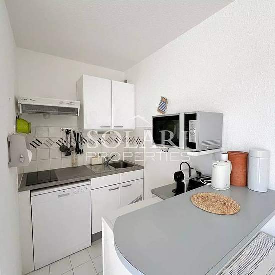 Location de vacances : Idéalement situé à Théoule-sur-Mer, cet appartement T2 est parfait pour un séjour en bord de mer sur la Côte d’Azur. Niché dans une résidence avec piscine, il offre un cadre paisible à quelques minutes des plages et des sentiers de randonnée dans l’Estérel, permettant d’explorer les paysages spectaculaires de la région. L'appartement se situe aux portes des plus belles randonnées de l'Estérel dont celle menant à la célèbre Notre-Dame-d'Afrique. L’appartement se compose d’une entrée avec lits superposés, d’un WC indépen...