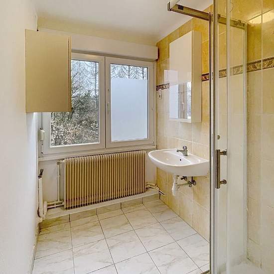 LOCATION THIL APPARTEMENT F2 - CAVE. Proche frontière luxembourgeoise et tous les commerces. Appartement type F2 de 44 m² au rez-de-chaussée surélevé comprenant : entrée, cuisine toute équipée (four, plaque de cuisson, hotte, réfrigérateur, lave vaisselle), séjour, 1 chambre avec placard, salle de bains avec douche et WC séparé. Le logement dispose également d'une cave. Chauffage individuel gaz. Disponible à partir du 17 Février 2026.