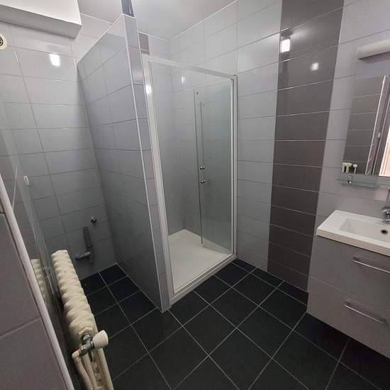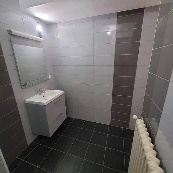 F2 - 59 m² - located in the heart of Thionville's pedestrianized center, close to all amenities including bus stops to Luxembourg and other destinations, motorways, and just a short walk from the pedestrian route that leads to the SNCF train station and the IUT. On the 3rd floor of a small 4-storey building (no elevator) - 1 living/dining room with built-in closets, 1 bedroom, separate fitted kitchen with upper and lower cabinets, electric oven, 4-burner vitroceramic hob, electric extractor hood; comfortably sized fully tiled shower room - s...