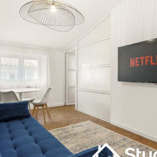 Emplacement : Situé en plein centre-ville de Toulon, à seulement 2 minutes à pied de la porte principale de la base navale, 6 minutes à pied du centre commercial Mayol, et 11 minutes à pied de la faculté de droit, ce magnifique T2 est idéalement placé pour allier confort, praticité et proximité. Le Bien : • Entièrement rénové : Finitions modernes, matériaux de qualité et une ambiance chaleureuse. • Meublé et équipé : Cuisine entièrement aménagée (four, plaques, réfrigérateur, micro-ondes, vaisselle), salon avec canapé, table, télévision, cha...