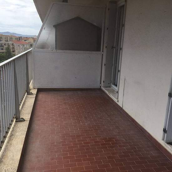 For rent in Toulon, Saint-Jean-du-Var district — at the end of a cul-de-sac: a one-bedroom (type 2) apartment on the 4th and top floor with elevator, comprising an entrance hall with dressing/closet, a bedroom, a kitchen, a living room opening onto a terrace with no overlooking neighbors and an unobstructed view, a bathroom and a separate toilet. Quiet area.