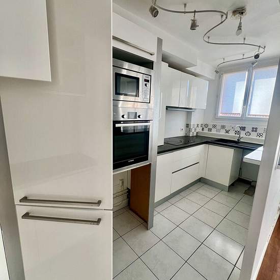 In the Busca neighborhood, close to shops, the Saint-Michel metro and ring road access (Rue Victor Segoffin). On the 4th floor with elevator, discover this large one-bedroom apartment (T2) of 45 m² with an entrance featuring a small office area, a bright living room with an open-plan fitted and equipped kitchen (oven, hob, extractor hood, microwave), a quiet bedroom, a shower room and separate WC. Balcony overlooking the living room and the bedroom. Cellar. Gas heating, double glazing, parquet flooring in the living room and bedroom. Availab...