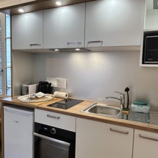 VIVRE à Tours dans l'hyper centre dans le cadre d'une mission professionnelle ou pour faire des études longues ou dans le cas d'une mutation Superette à 20 m de l'appartement Les halles à 150 m ouvertes tous les jours Vieux Tours à 400 m de l'appartement , nombreux petit restaurant à tous les prix et le charme de la ville historique Ce F2 vous ravira par son charme, et la qualité de ses prestations, magnifique cuisine, entièrement équipée, salon adorable Espace de laverie à disposition au sous sol de l'immeuble avec 2 machines à laver, 2 sèc...