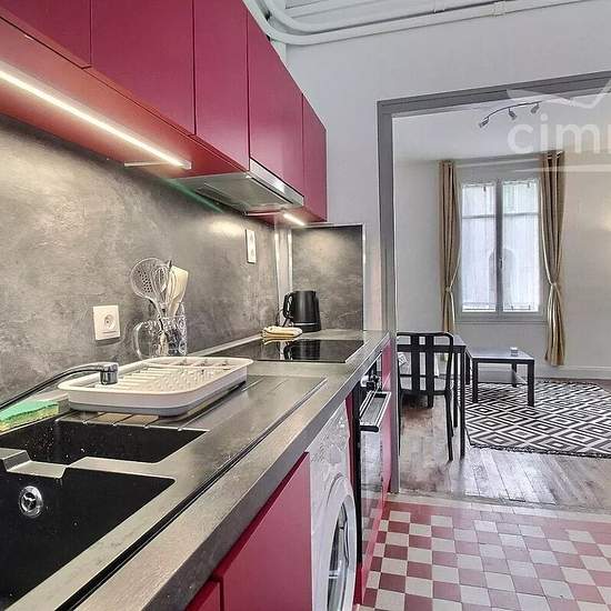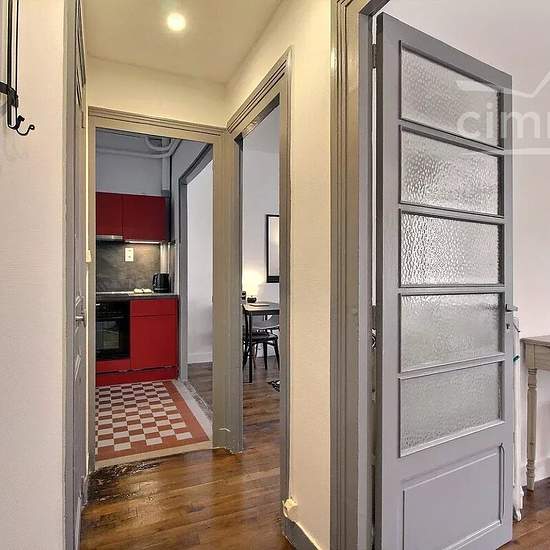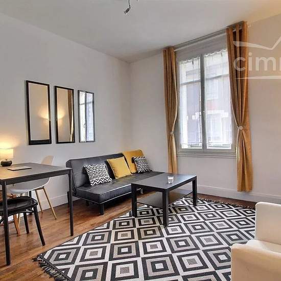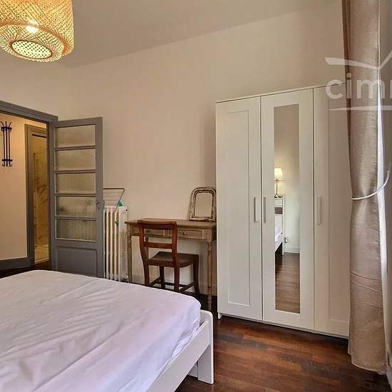 FURNISHED, available March 23. Place BEAUJARDIN, in a family-friendly, quiet yet lively neighborhood (market twice a week), 2-room apartment of 38 m² on a raised ground floor, renovated in a small, well-managed older building. Through apartment; it comprises an entrance, separate WC, a shower room, a fitted kitchen (induction hob, built-in oven, washing machine, refrigerator...), a living room with dining area, occasional sofa bed, TV, and a bedroom of approx. 13 m² with double bed, wardrobe/dressing and a desk area. The property includes a ...
