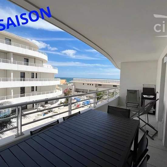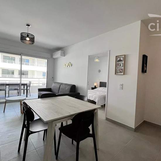 LOCATION SAISONNIERE Venez vous détendre dans ce bel appartement situé au 4ème étage d'une résidence toute neuve avec ascenseur. Ce coquet t2 conçu pour 4 personnes comprend une cuisine entièrement équipée (cafetière Senseo + filtre) ouverte sur un séjour avec un canapé lit (lit 140) , une chambre avec un lit king size (160X200) , une salle d'eau avec douche à l'italienne et toilette et une terrasse exposée Est avec une jolie vue sur la mer méditerranée. Une place de parking à l'abri vous est réservée. Le ménage et le linge de lits sont incl...