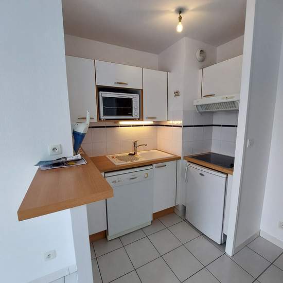 Vaux-sur-mer proche Pontaillac, bel appartement F2 rénové situé au 3ème étage avec ascenseur d'une résidence comprenant : Entrée avec placard, séjour/cuisine aménagée, 1 petite chambre, une salle d'eau - wc indépendant - Chauffage électrique, garage, piscine commune.