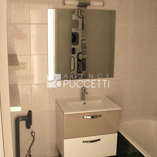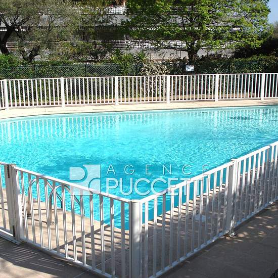 VENCE, quartier résidentiel, agréable deux pièces dans une résidence avec piscine, comprenant séjour, cuisine ouverte aménagée, chambre avec placards, salle de bains et w-c. Terrasse, cave et garage. Disponible à partir du 23 / 02 / 2026.
