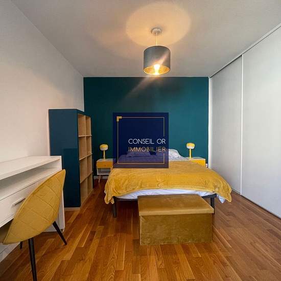 Conseil Or Immobilier, St Genis Laval agency, exclusively offers for rent: In the commune of Vénissieux, on the border of Lyon's 8th arrondissement, a two-room (T2) apartment of 45 m², fully furnished and tastefully decorated. It comprises an entrance hall leading to a bathroom with WC, a living room with a fitted and equipped kitchen opening onto a balcony, and a pleasant bedroom. Located on the 3rd floor of 4 in a quiet, secure residence built in 2013, you will appreciate the proximity to shops, schools (primary and higher education) and t...