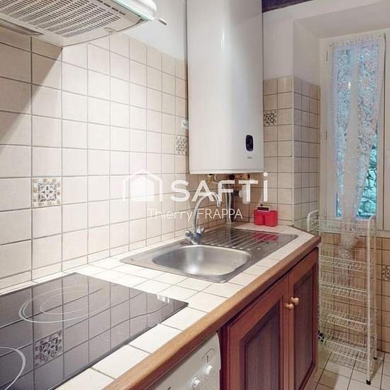 Cet appartement T2 de 29 m², situé en rez-de-chaussée d'un immeuble ancien du centre de Vico, offre un cadre chaleureux et pratique à deux pas des commerces du village. Le logement se compose d'un séjour lumineux marqué par une belle cheminée en briques et des poutres apparentes, donnant une vraie atmosphère de maison de village. La cuisine séparée, entièrement équipée (plaque vitrocéramique, lave-linge, rangements, chauffe-eau récent), est fonctionnelle et agréable au quotidien. La chambre indépendante bénéficie d'une fenêtre et offre un es...