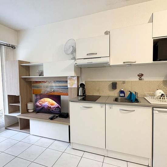 VILLENEUVE LOUBET - AV DU LOGIS DE BONNEAU - STUDIO MEUBLE - TERRASSE/JARDINET - PARKING - CALME ABSOLU - PISCINE. VILLENEUVE LOUBET - AV DU LOGIS DE BONNEAU - STUDIO MEUBLE - TERRASSE/JARDINET - PARKING - CALME ABSOLU - PISCINE Dans un bel immeuble, nous vous proposons un studio meublé de 27m² situé au rez-de-jardin comprenant : un hall d'entrée avec placard, une pièce à vivre avec un coin nuit donnant sur une terrasse avec jardinet au calme absolu, complétée par une cuisine aménagée et équipée ( plaque, frigo, hotte, four) et une salle de...