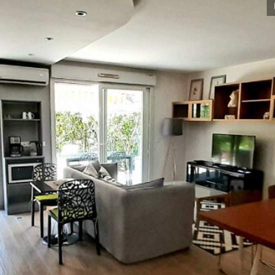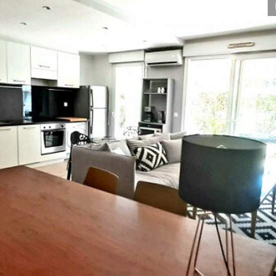 Bel appartement moderne et confortable de 2 pièces idéalement situé à Villeneuve-loubet dans une résidence avec piscine. Exposition sud avec jardin. Proche plage et commodité (commerces et transports). Quartier calme et résidentiel. Appartement fonctionnel décoré avec goût. 1 chambre lit double avec accès au jardin. 1 pièce de vie spacieuse avec avec canapé convertible en 160. Place de stationnement dédiée au sous-sol, accès direct au bâtiment. Piscine dans la résidence avec accès sécurisé. Petits animaux acceptés