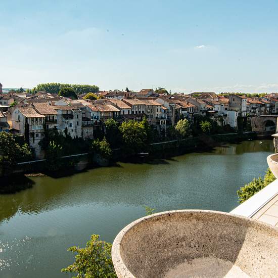 PRODUIT RARE, à VILLENEUVE SUR LOT en bord de Lot, grand appartement T2 bis d'architecte d'environ 80 m² SEMI-MEUBLE (cf photos) avec vue imprenable sur le LOT. Très cossu, vintage années 70, il est situé au 3ème et dernier étage d'un immeuble sécurisé (sans ascenseur). Il se compose : d'une vaste pièce de vie d'environ 44 m2 ouverte sur une terrasse d'environ 14 m2 exposée plein sud avec vue sur le Lot et la ville rive gauche, une cuisine équipée neuve avec four, plaques, hotte, lave-vaisselle, réfrigérateur et congélateur, une buanderie éq...