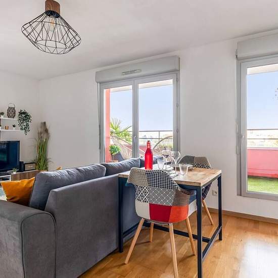 Appartement de 51 m² à louer sur Villeurbanne Villeurbanne - T2 Spacieux en Toit Terrasse / Loué Meublé. Appartement traversant – Lumineux avec exposition Est / Ouest Au 6ème et dernier étage Résidence livrée en 2012 avec RT2012. Il propose une entrée confortable avec un grand placard mural. L'entrée permet de séparer le séjour de la chambre et d'accéder à la salle de bain et au WC séparé. Séjour lumineux avec cuisine équipée et ouverte. Micro-onde, four, cave à vin et lave-vaisselle intégrés. Grand frigo. Plaque à induction. Hôte. Nombreux ...