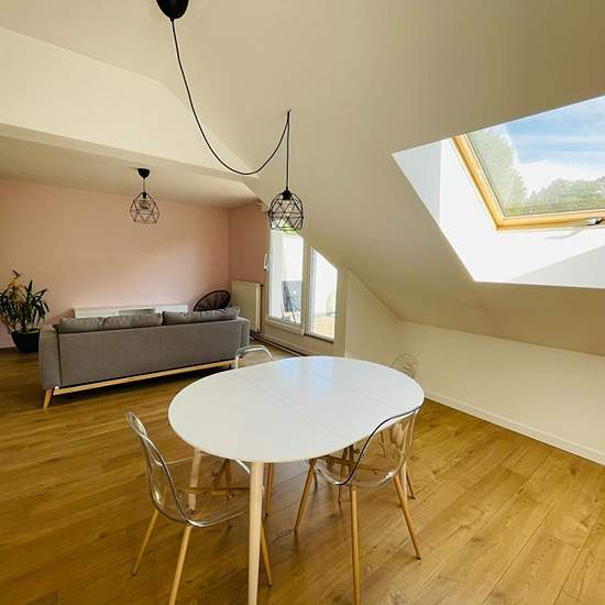 F2 MEUBLE - VOLMERANGE LES MINES. 57 RUE DE LA MINE, 57330 VOLMERANGE-LES-MINES : Situé à moins de 5 minutes de DUDELANGE, à proximité immédiate des commerces, ce lumineux appartement meublé est composé d'une entrée avec placards, une cuisine équipée et aménagée ouverte sur un séjour donnant accès à une terrasse, une chambre, une salle de bains et un WC séparé. Ce logement vous propose aussi une cave et un emplacement de stationnement en souterrain. Chauffage individuel au gaz. Disponible de suite ! Soumis à ancien DPE.