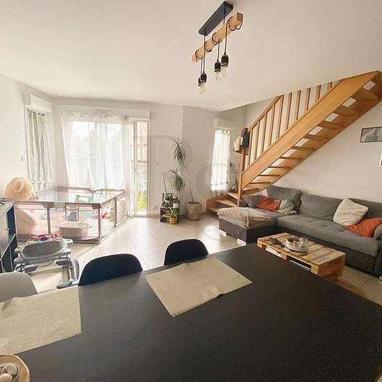 Proche de tous commerces et commodités, maison de type F3, comprenant: RDC: Entrée - séjour/salon avec cuisine équipée ouverte, WC 1er étage: palier, 2 chambres, salle de bains/WC 2 places de parking LIBRE LE 1 mars 2026