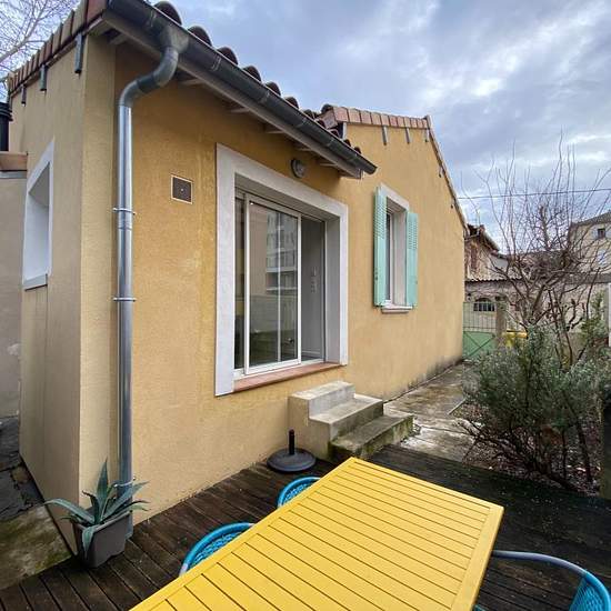 A louer sur Avignon extra-muros, maison meublée de 80.95m² avec jardin et garage - Secteur Saint Lazare Venez découvrir cette charmante maison meublée de plain-pied, au calme, en fond d'impasse. Elle comprend un agréable séjour de 24 m² avec poêle à bois, une cuisine indépendante équipée avec espace salle à manger donnant sur une terrasse. L'espace nuit dispose de deux chambres de plus de 11 m² avec rangements, d'une salle de bains, et d'une mezzanine de 14 m² (au sol) pouvant servir de chambre. La maison offre également un garage, un jardin...