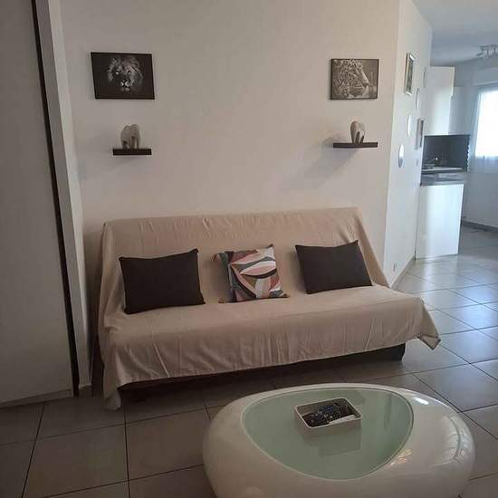 L'appartement est situé au 1er étage (sur 5) accessible par ascenseur, pour un environnement calme grâce au double vitrage, offrant tranquillité et sécurité grâce à sa résidence sécurisée. Il est climatisé. Le logement se compose de deux pièces, comprenant : - Une entrée avec un placard de rangement. - Une pièce principale avec un canapé-lit pour deux personnes, une télévision, une grande table à manger. - Une chambre avec un lit double (160 /200), une télévision, un grand placard pour le rangement de vos affaires (étagères et penderie). La ...