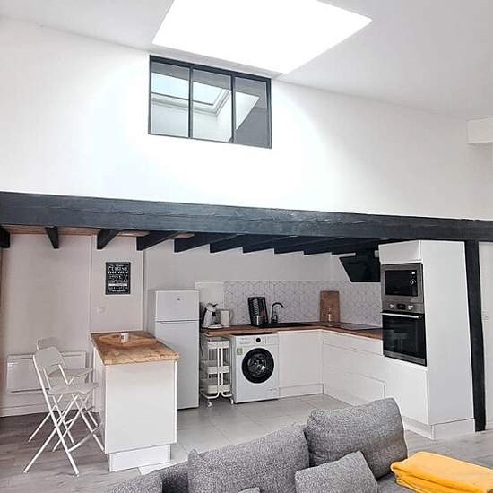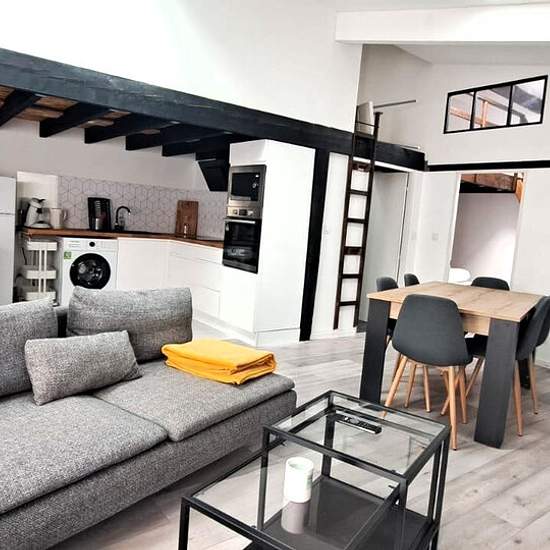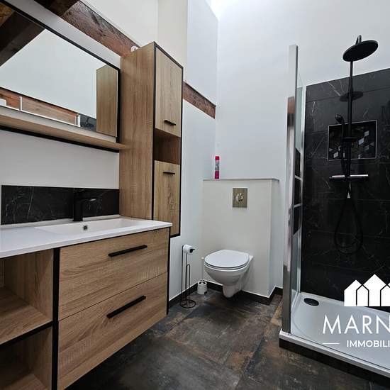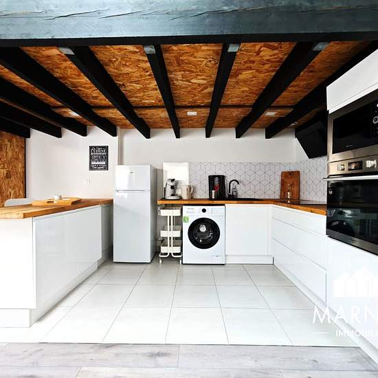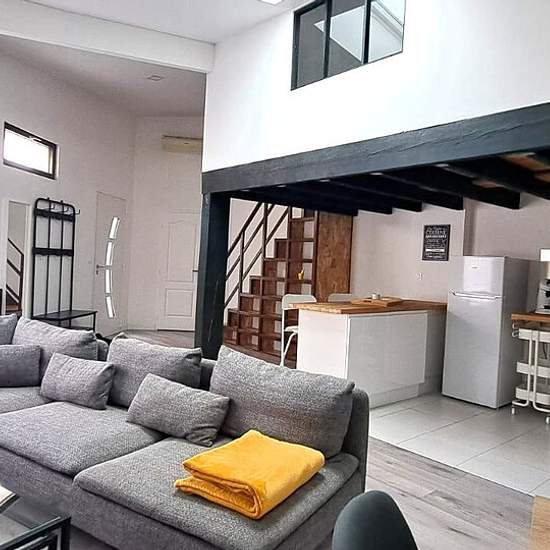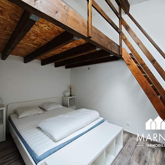 Rare sur le marché ! Marnéo Immobilier vous propose à la location cette superbe maison de ville esprit loft, entièrement meublée et équipée, idéalement située à proximité immédiate du centre-ville, des grands axes et de toutes les commodités. Séduisante par ses belles prestations et son atmosphère moderne, elle offre une magnifique pièce de vie avec cuisine américaine ouverte. Vous bénéficierez d’une chambre avec espace mezzanine ainsi que d’un second espace en mezzanine aménagé en deuxième chambre, offrant charme et fonctionnalité. À l’exté...