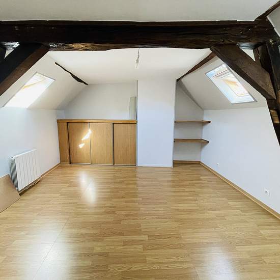 Maison de ville en hypercentre de Châtellerault comprenant : Entrée, séjour, cuisine. Au 1er étage : une grande chambre avec placard et cabinet de toilette. Au 2ème étage : une grande chambre et une salle d'eau. Au sous-sol : une cave.